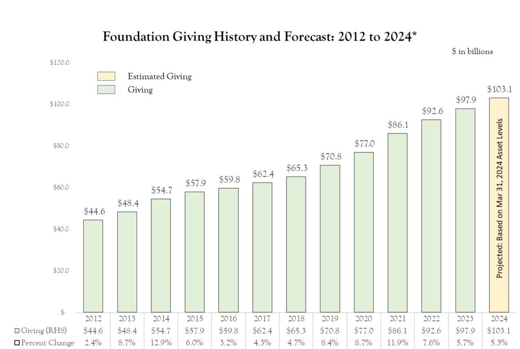- Asset Value: The giving assumption is based on March 2024 estimated foundation asset levels of $1.55 trillion.